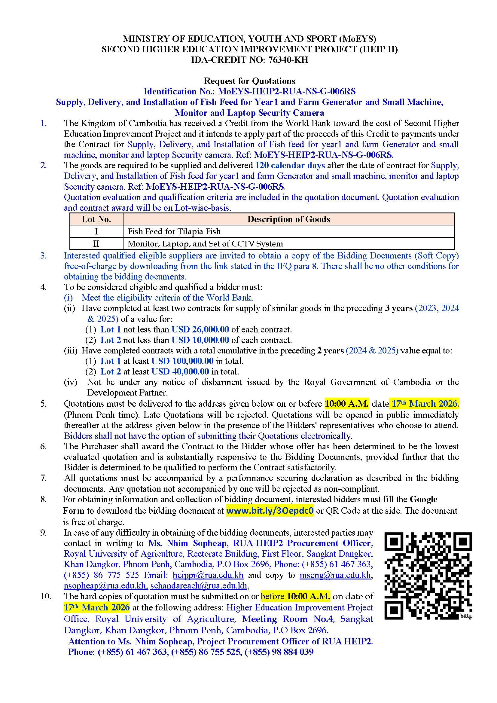 Royal University of Agriculture, Sangkat/Khan Dangkor, Phnom Penh, Cambodia.