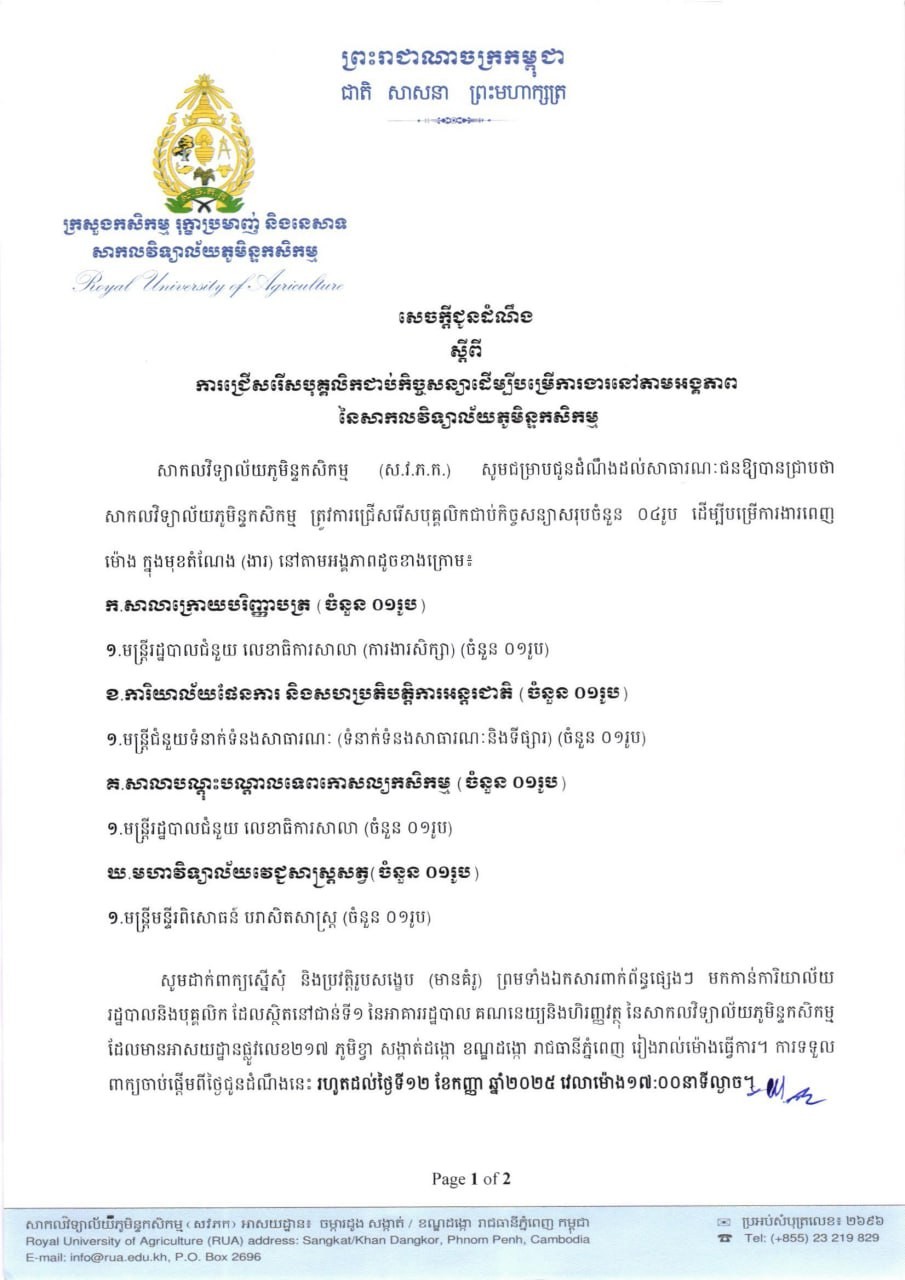 Royal University of Agriculture, Sangkat/Khan Dangkor, Phnom Penh, Cambodia.